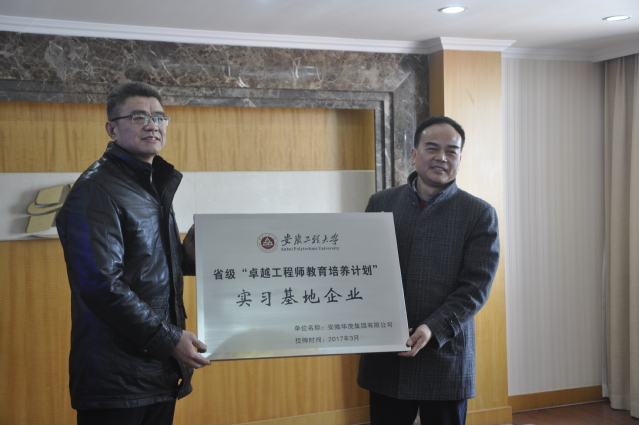 纪天新首先对华茂集团多年来给予我校人才培养工作的大力支持表示感谢,简要介绍了学院的专业建设和卓越工程师培养计划。倪俊龙感谢学校对华茂集团的信任,他表示华茂作为中国纺织行业的领头企业,一定会在纺织高端人才培养方面发挥积极作用,并且希望和学校开展更深层次的合作,把产学研落到实处,为纺织行业的创新发展做出贡献。左志鹏介绍了企业对本次实习的总体安排,双方就实习过程中的细节问题进行了商讨,达成一致意见。随后,双方签订了实习基地协议,并举行了授牌仪式。