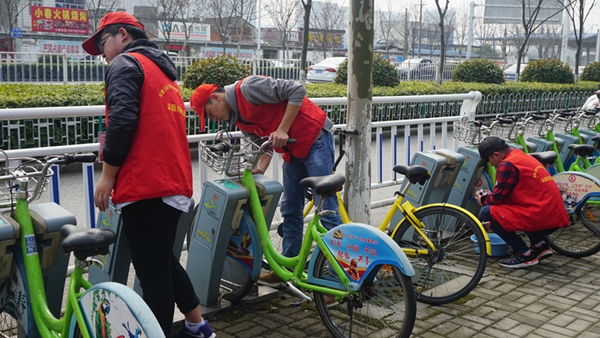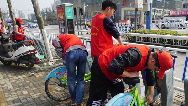 3月5日是第55个全国学雷锋纪念日,也是第19个中国青年志愿者服务日,4日下午,计算机与信息学院志愿者队的队员们在学校东门开展了公共自行车清洁活动。