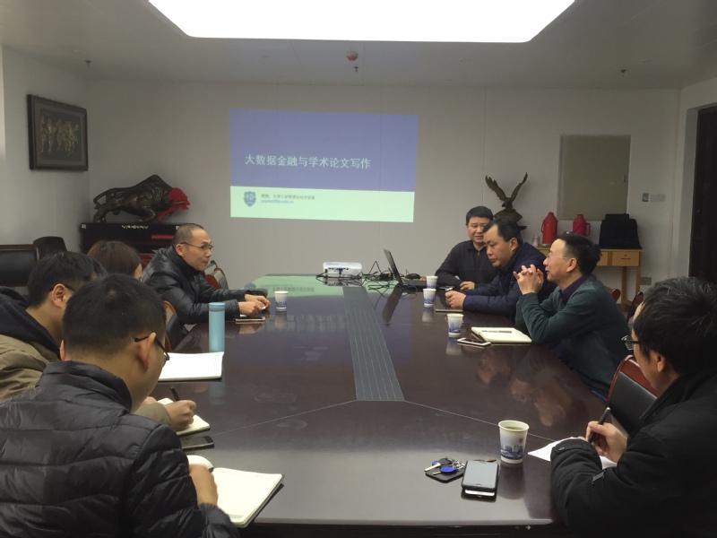 1月12日上午,天津大学教授熊熊应管理学院邀请,在C座818会议室做了题为“金融大数据分析与管理类学术论文写作”的学术报告。会议由院长王忠群主持,科技处副处长何朝林、管理学院副院长龚本刚、学院部分教师以及研究生参加了此次报告会。