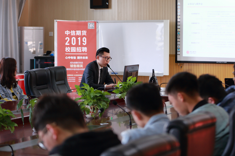 3月12日,中信期货芜湖分公司及中信证券芜湖新时代商业街证劵营业部一行六人来数理学院招聘毕业生。专场招聘会分别在数理学院三楼学术交流室和四楼会议室举行。