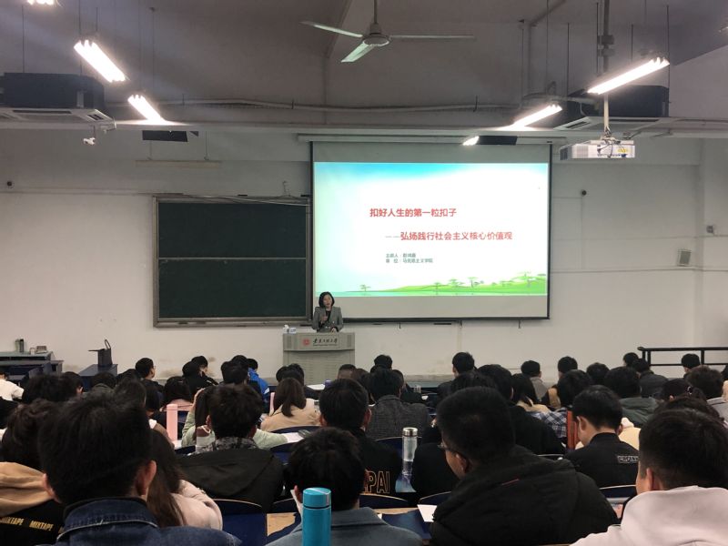 开班仪式结束后,马克思主义学院的彭鸿雁教授为培训班进行了第一次专题讲座。彭鸿雁以“扣好人生的第一粒扣子”为主题,从“是什么”“为什么”“怎么做”三个方面为学员详细阐述了社会主义核心价值观的内容,以及践行社会主义核心价值观的意义。彭鸿雁强调价值观是我们的终极行为指南,在日常的生活学习中,我们不仅要注意个人价值观的培育和引导,还要践行集体中的核心价值观。社会主义核心价值观是当代中国精神的集中体现,是全体人民共同的价值追求,培育和践行社会主义核心价值观,关系到社会的和谐安定、人民的幸福安康。