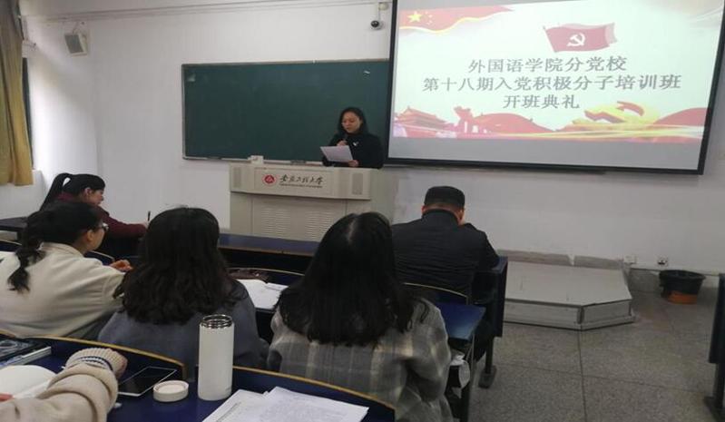 3月13日16时,外国语学院分党校第十八期入党积极分子培训在6教108举行开班典礼。院党委书记、分党校校长魏长顺,院党委组织员余本祺,学生第2党支部书记刘云云出席了典礼。典礼由培训班班主任张君主持。