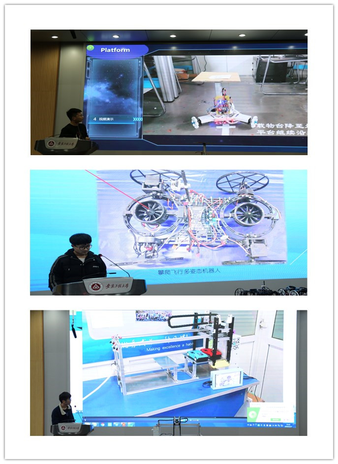 最终,在评委们的认真评审下,建电161付士利等“全向升降载物平台”获得一等奖;机电161吕阳等 “基于高温天气下汽车自调节温度与发送求救信号系统的研发”和电子163宋德志等“攀爬飞行多姿态机器人”获得二等奖;机械172俞俊等“多支撑轮式蠕动管道清理机器人”、 电子163赵梦怡等“新型二轴垂直起降飞行器”和电子162李虎等“升级版—曲面绘图仪”获得三等奖。其他作品获得入围奖。