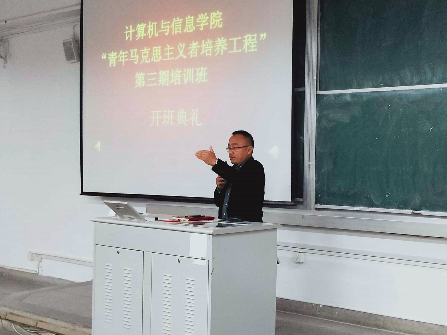 为贯彻落实团中央《关于新形势下推进从严治团的规定》,根据《RayBetApp官网下载 “青年马克思主义者培养工程”实施规划(2017-2020年)》部署, 3月27日下午,计算机与信息学院在二教107教室隆重举行院“青年马克思主义者培养工程”(简称“青马工程”)第三期培训班开班典礼。校团委副书记郭广春、院党委副书记章靖平、院团委负责老师苑雨露、班主任孙力力、全体第三期学员参加此次典礼,典礼由苑雨露主持。