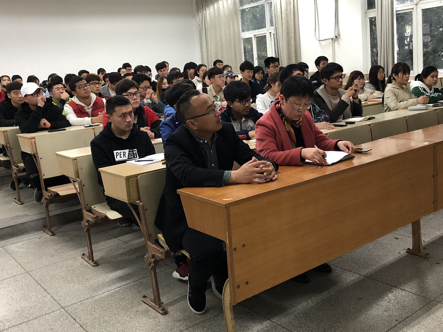 典礼结束后,郭广春以《学习团十八大精神,做新时代的新青年》为题作开班讲座。讲座以共青团的名称、团旗、团歌的发展为切入点,让同学们更加丰富了团情团史知识。郭书记从不同维度、不同深度详细剖析了团的十八大精神,指出共青团是党的助手和后备军,而作为共青团员要努力学习,将来能够为建设中国特色社会主义、实现中国梦的伟大事业作出自己的一份贡献。