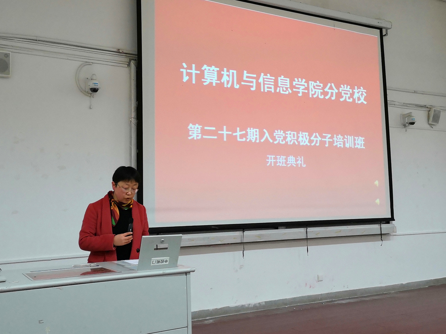 3月27日下午,计算机与信息学院分党校第27期入党积极分子培训班开班典礼在2教报告厅隆重举行。院党委副书记章靖平、组织员罗国旗、软件工程专业学生第二党支部书记、本期培训班班主任孙力力以及培训班全体学员出席本次典礼。典礼由章靖平主持。