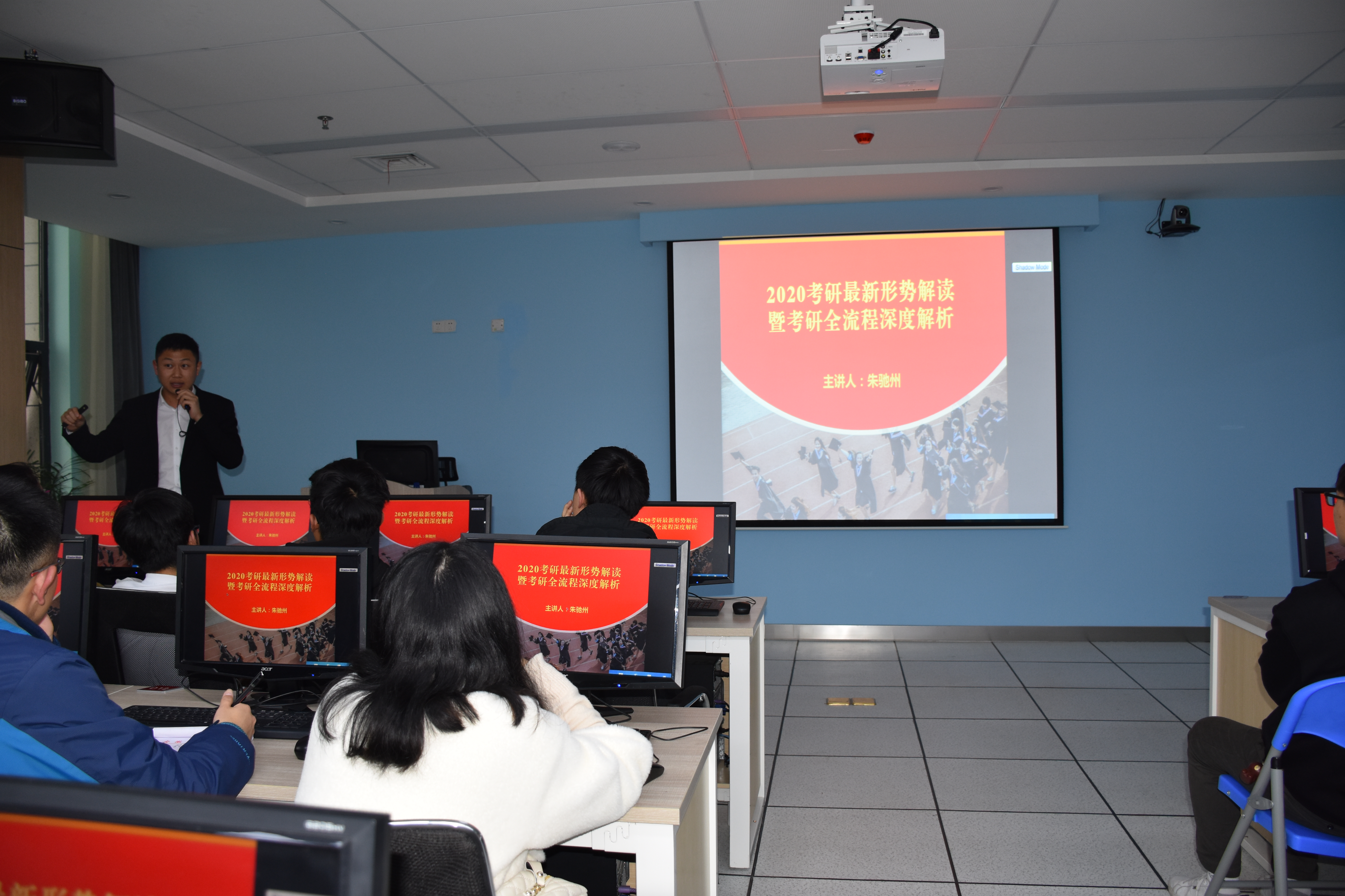 3月27日下午,图书馆邀请考研规划专家朱驰州老师为我校学生作“研究生考试规划与复习指导”培训讲座,讲座在新图书馆五楼多媒体教室进行,150多名有意向考研的学生前往聆听了讲座。