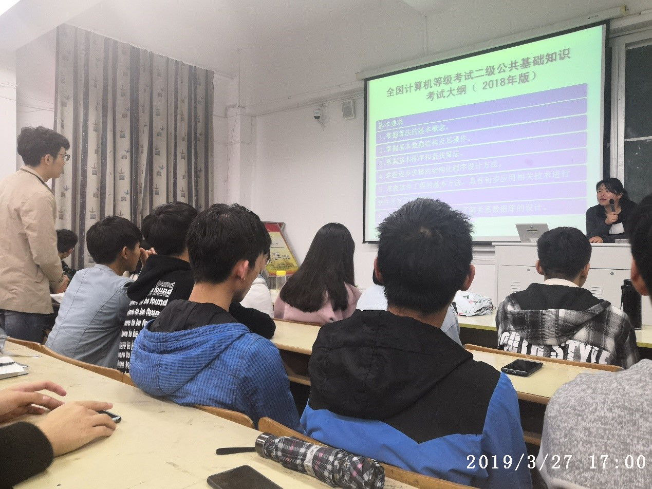 全国计算机等级考试是经原国家教育委员会(现教育部)批准,由教育部考试中心主办,面向社会,用于考查应试人员计算机应用知识与技能的全国性计算机水平考试体系。为了让广大同学进一步了解全国计算机二级考试(国二)的有关知识,帮助大家更好地备考,计算机协会于3月27日下午在2教207开展了国二辅导,由计算机与信息学院教师伊芸芸主讲。本次活动由校团联会主办,计算机协会承办,得到了广大同学的大力支持与积极参与。