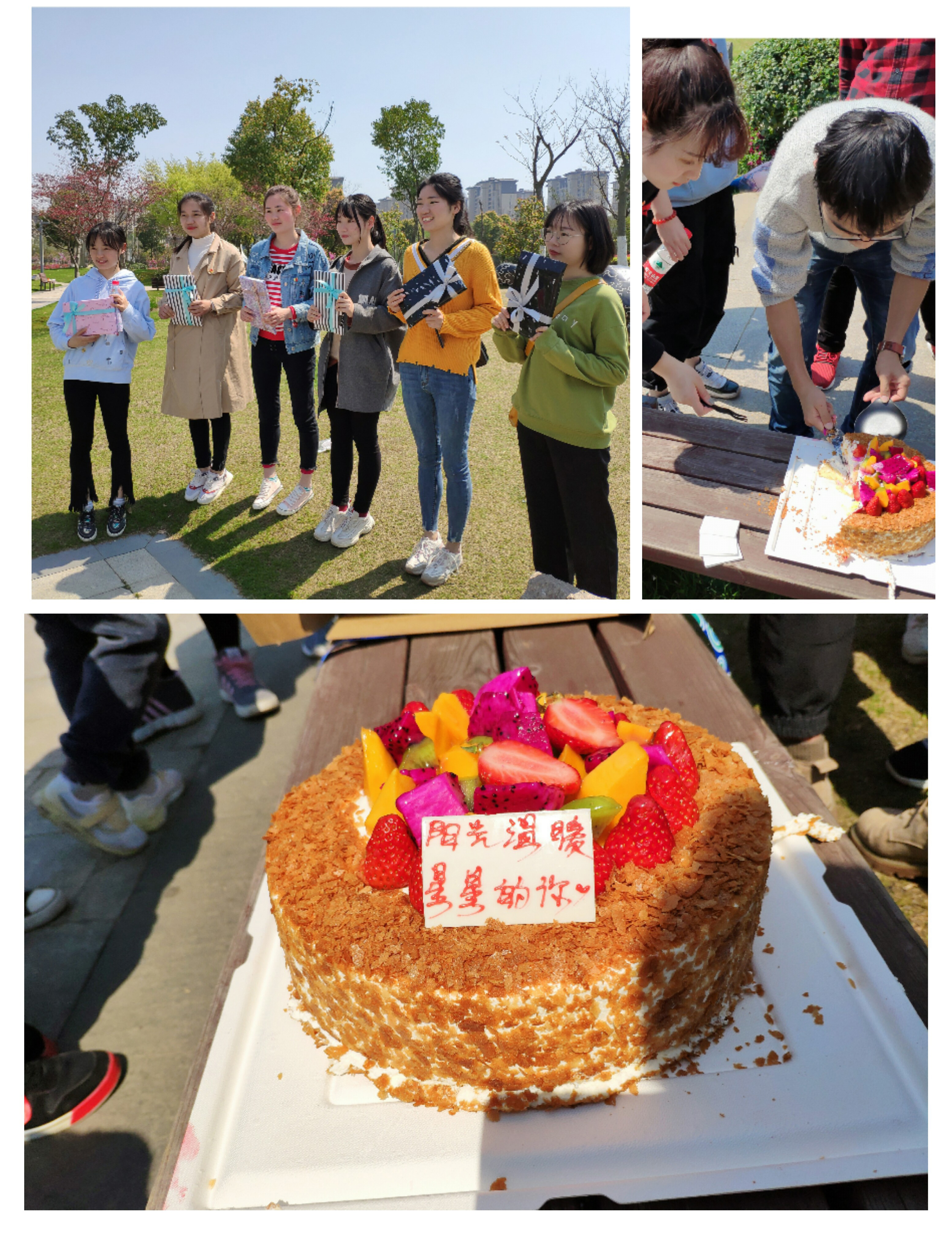 党支部同学分组与自闭症儿童一起在准备好的空白风筝进行涂色手绘,然后进行组装和风筝放飞操纵,培养孩子们动手与身体协调能力,树立孩子们的信心。党支部同学和自闭症儿童还进行了传球乐跑活动,让他们听从指令按路线奔跑,让他们找到游戏乐趣。活动中,党支部同学拿出准备好的蛋糕以及给每个孩子的小礼物,给自闭症儿童以及家长在春天里过个特别的生日,让孩子们感受到快乐。