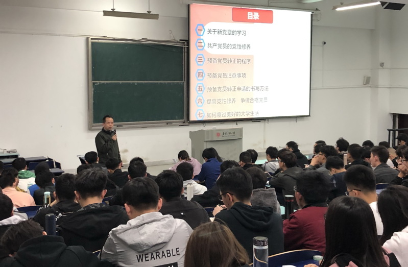 为提高预备党员的党性修养,增强思想建设,强化党员意识,机械与汽车工程学院分党校于4月9日在5教21室举行专题讲座,机械与汽车工程学院党委书记伊长文为预备党员培训班讲授专题党课。