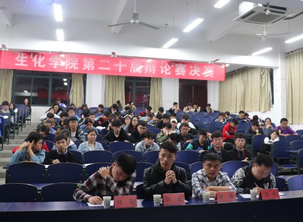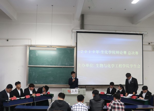 生物与化学工程学院第二十届辩论赛决赛于4月13日晚在6教215举行。此次决赛特邀请兄弟学院的学长担任评委。比赛现场吸引众多学生观摩 。