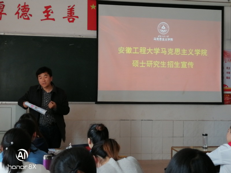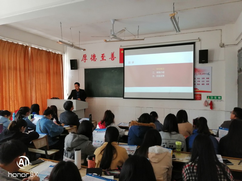 刘聪、李海涛、卜晓勇、李德才等老师重点针对两校思想政治教育专业的本科生进行了研究生招生宣传宣讲会,从校院概况、师资力量、学科实力、学科影响力、奖助体系、培养特色、就业前景、软硬件环境等多方面向同学们介绍了马克思主义学院硕士学位授予点的情况,鼓励同学们积极报考,播下日后燎原之势的星星之火种。宣讲结束后,各位老师与同学们开展了互动环节,一一耐心解答了在座同学提出的系列问题,并结合自己的学习工作经历和研究生培养过程中的经验给大家提出了考研备考以及后期学习规划等等的中肯建议,建议各位同学从自身实力出发,量力而行,脚踏实地。