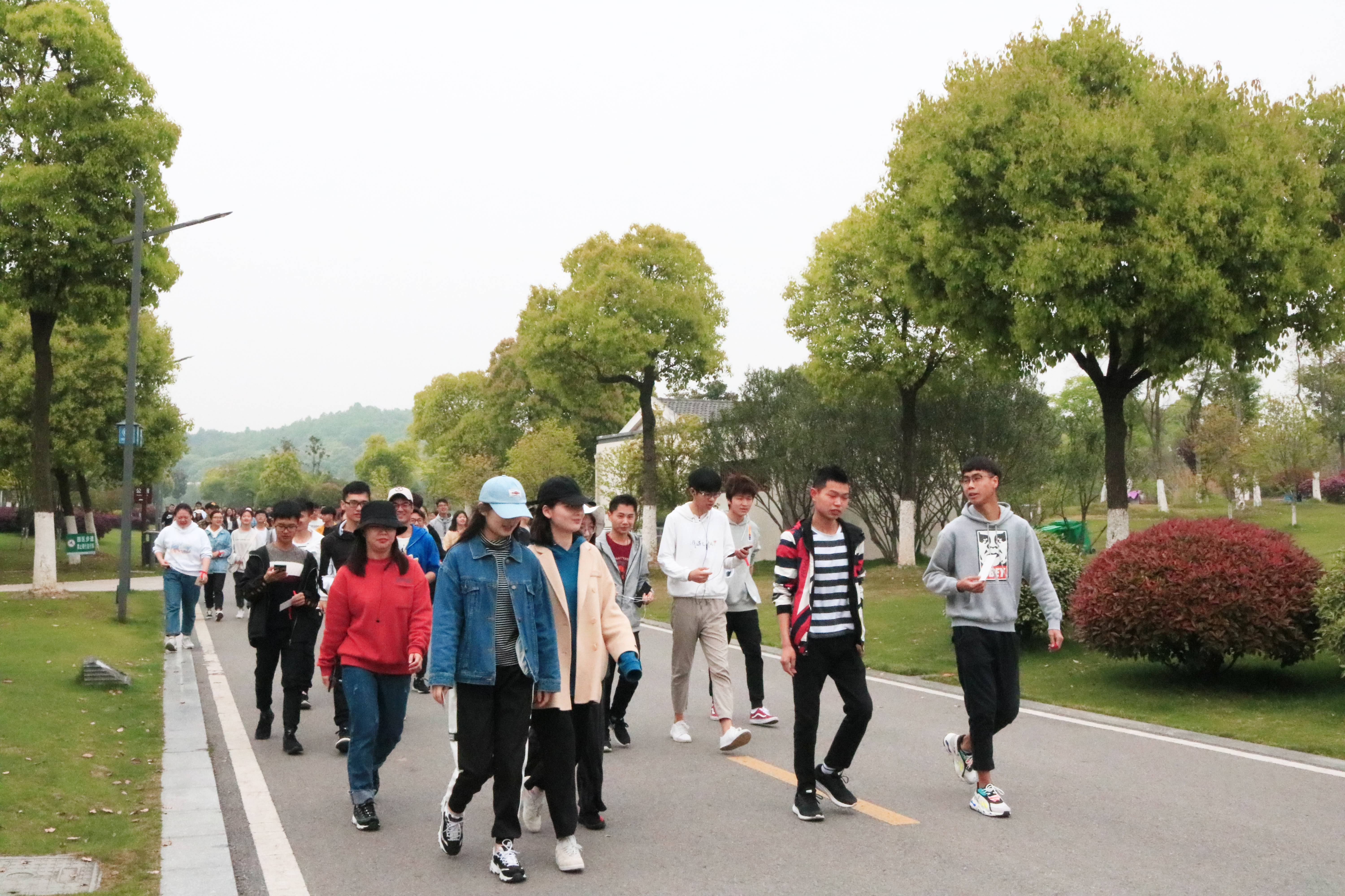 此次活动总路程约五公里,近200名学生参与其中。活动伊始,金艾裙发表讲话,她以“我能行,我真棒”为口号,激励同学们注意安全、放松心情,坚持到底、迎接春光,并鼓励同学们从中感受到运动的魅力。与传统形式的踏青活动不同,为丰富本次活动的内容,在公园内共设置五个打卡点。师生们从雕塑公园南门出发,历经4个打卡点,最后回到南门口。沿途风景独绝、春意盎然,整个旅途充满着大学生朝气蓬勃和坚持不懈的氛围。过程中虽你追我赶,但又互帮互助,大家在与大自然的亲密接触中感受到了绿色出行的意义,以永不放弃的精神完成了此次短距离徒步活动。最终,李志文、王志超、周子博等二十名同学取得了优异的成绩,活动结束后师生共同合影留念。