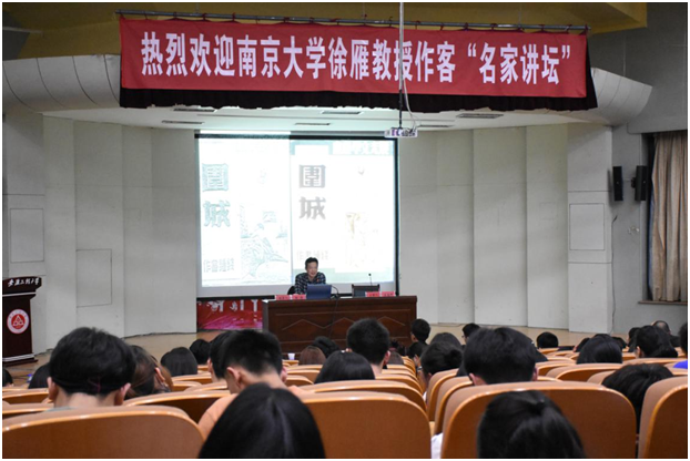在第24个世界读书日来临之际,为建设书香校园,丰富校园文化生活,图书馆于4月17日晚在学术报告厅举办了名家讲坛活动,特邀嘉宾——南京大学教授徐雁做客讲坛,他以“最是书香能致远——论读物选择与幸福追求”为题,为现场读者阐明读书要义并分享交流读书心得体会。图书馆馆长王忠群主持讲坛,近300名读者聆听了徐雁的讲解。