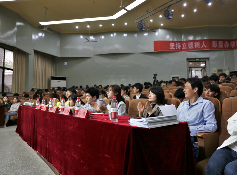 在第一篇章“神采·奕”中,12个团支部依次登台演讲,展示支部在团的组织建设、学风建设、团属新媒体建设、主题团日活动等方面取得的丰硕成果。各团支部特色各异。如,有的围绕 “学习团十八大精神,牢记青春使命”主题,加强政治学习;有的团支部成员都积极参加团支部组织的志愿活动;有的创新学习小组形式,让成绩领先的成员对成绩相对靠后的同学进行一对一帮扶,实现共同进步;有的开展一系列丰富的支部活动,充实同学们的课余生活……在第二篇章“青年·志”的知识竞答中,考察了各团支部对团的基础知识的了解和掌握,比赛过程十分激烈,难分伯仲。