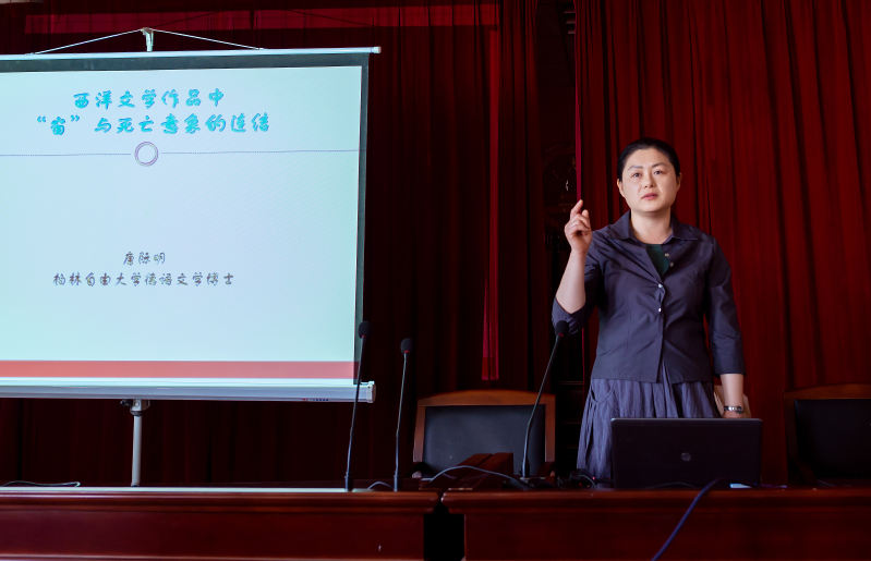 (本网讯)5月8日下午3点,来自台湾的唐际明博士应邀在外国语学院做了题为“西洋文学作品中‘窗’与死亡意象的连结”的学术讲座,全体教师和研究生聆听了讲座,讲座由院长黄焰结主持。
