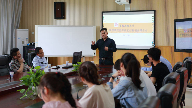 (本网讯)5月11日上午,应数理学院邀请数理学院2008届优秀校友传化物流全国运营总监杨龙、安徽恒舟一家人连锁药房有限公司的总经理兼最大股东栾飞、江苏满运软件科技有限公司张子文、西南财经大学在读博士刘文震在数理学院学术交流室作了以“创新创业”为主题的系列报告会。学院党委副书记、统计系主任、辅导员以及60多名学生代表聆听了报告会。