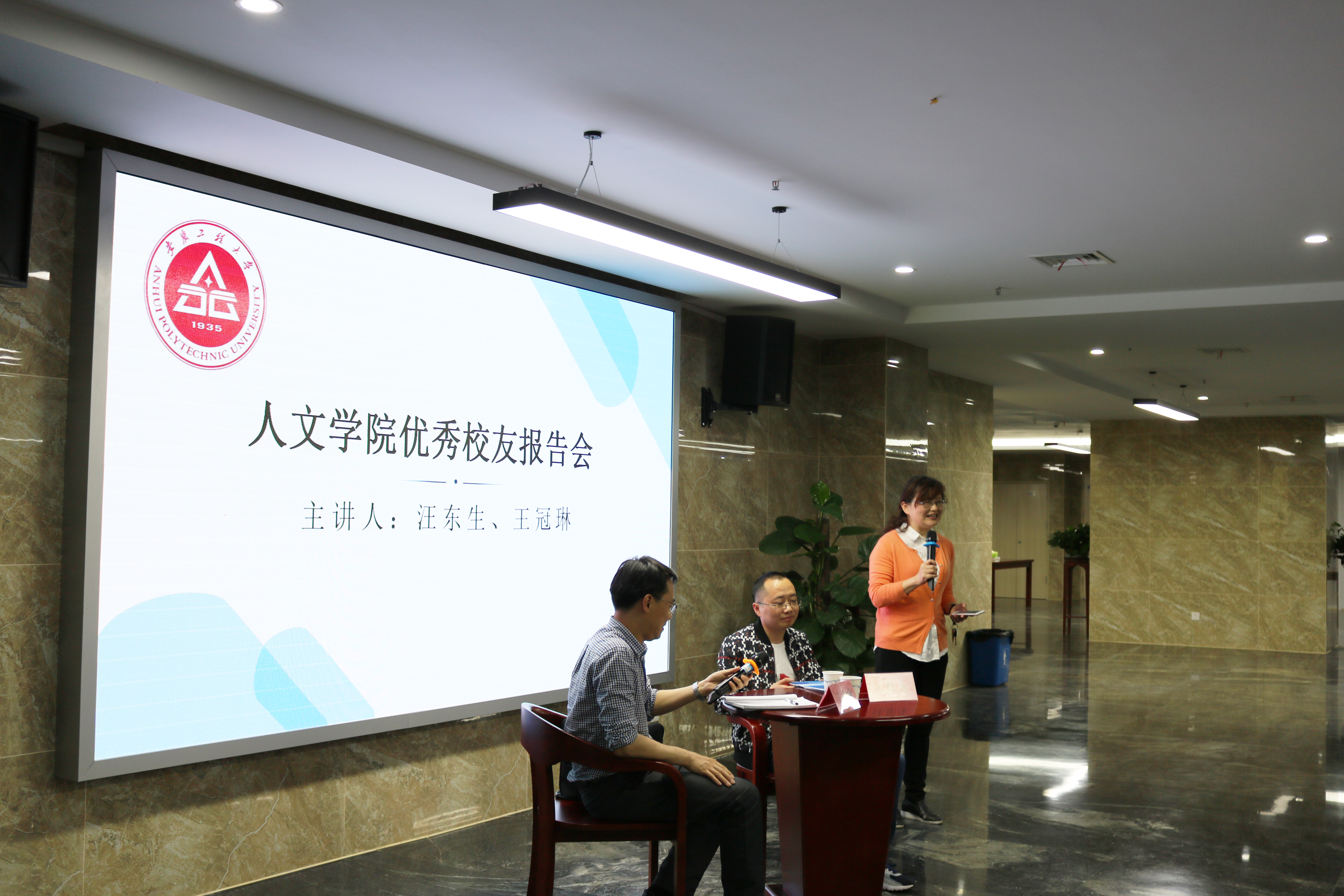 (本网讯)在纪念五四运动100周年之际,为更好地走近青年、倾听青年,关注青年愿望、帮助青年发展、支持青年创新创业。人文学院于5月9日晚在图书馆文澜阁举办创新创业优秀校友论坛。本次论坛特邀人文学院2004届校友、院校友分会副会长王冠琳、2006届校友汪东生返校作报告。论坛由院党委副书记金艾裙主持。人文学院党委书记邓英扣以及100多名师生代表参加了论坛。