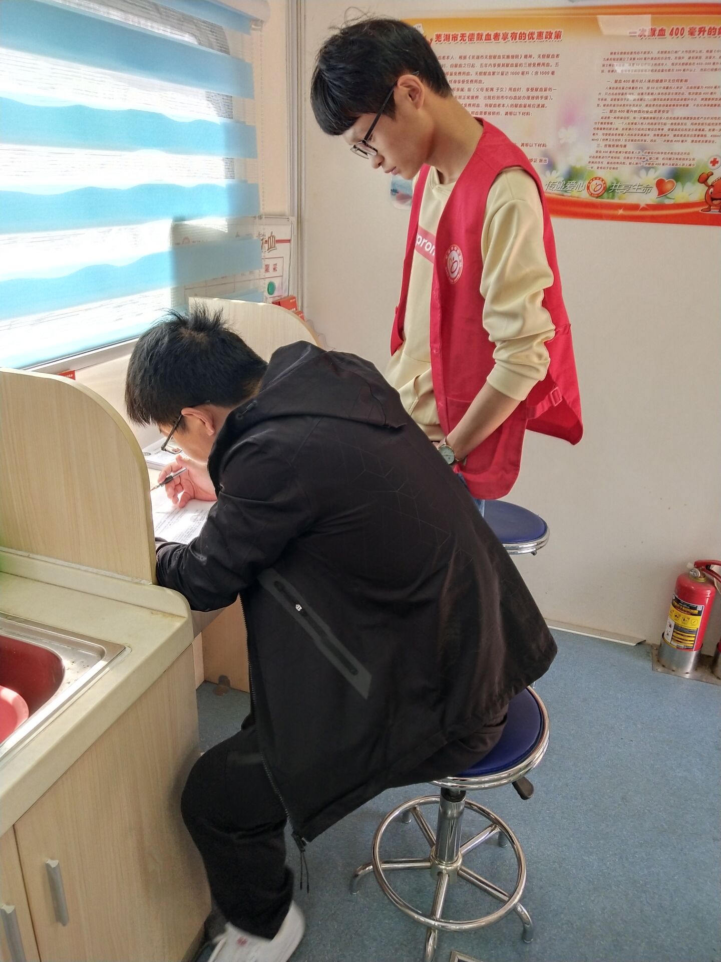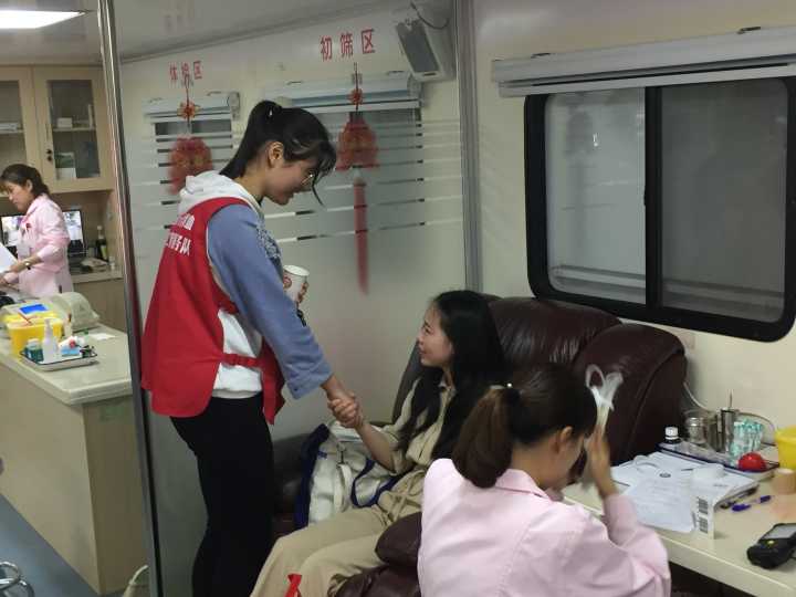 (本网讯)4月,“蒲公英”团队在芜湖市中心血站组织开展了4次献血车志愿服务活动。周末,志愿者们走出学校,到芜湖市献血车附近宣传无偿献血知识,协助献血工作,为献血活动贡献出自己的一份力量。