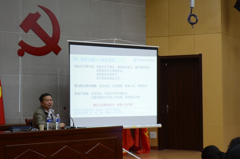 (本网讯)5月8日下午,机械与汽车工程学院在C座3楼报告厅举行了“以孵化培育看大学生创业”为主题的报告会。旨在进一步强化大学生职业规划意识和创业意识,提高实践能力和综合素质,着力培养社会责任感和创新精神。本次报告会邀请了马鞍山市高新技术创业服务中心主任朱慧刚主讲。