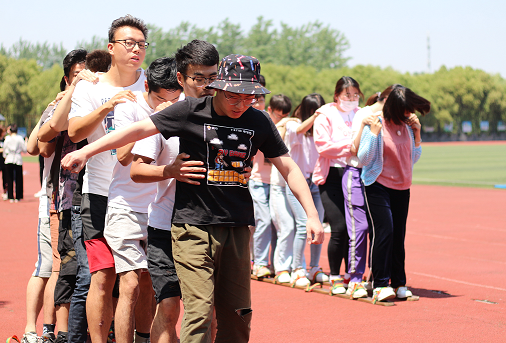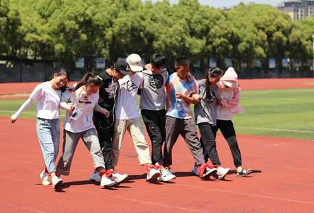 活动设立三个项目,分别是趣味跳大绳、同心协力、八人七足。这些项目都需要参赛的团队人员之间要分工协作、密切配合才能顺利完成,每个项目既有技巧性同时又考验每个团队人员之间的相互协作性。活动在裁判介绍下开始,学生们有说有笑,操场热闹非凡。首先进行的是同心协力,八人一组的小队一对木板上,后面的人扶在前面一个人的肩膀上,自发地打着节拍,喊着口号,每个队伍都聚精会神,齐心协力,奋力向前。接着趣味跳大绳和八人七足同时进行,现场热闹非凡,活动在激烈的比拼和欢声笑语中结束。