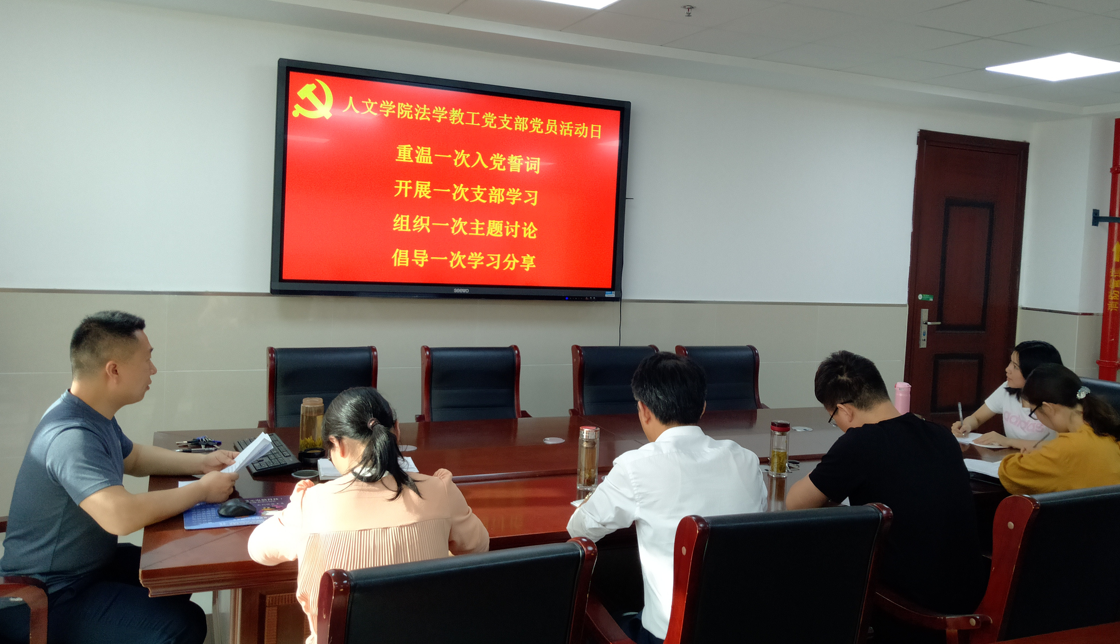 (本网讯)为贯彻落实中共中央国务院《关于全面深化新时代教师队伍建设改革的意见》,进一步加强师德师风建设, 造就党和人民满意的高素质专业化创新型教师队伍,落实立德树人的根本任务,根据校院两级党委的部署,人文学院法学教工党支部于5月23日下午开展“树良好师德师风,争做‘四有’好教师”主题党日活动。