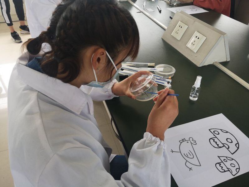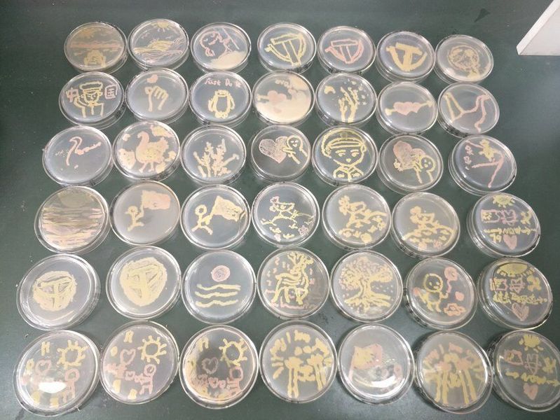 本次比赛分为初赛、复赛、决赛三个阶段,历经一个多月,参与学生数达到500余人。初赛用笔试选拔,成绩优异者进入复赛。复赛选手按照指定的菌种和指定的图案在培养基上作画,选拔操作技术好、作品质量优异的参赛者进入决赛。决赛选手根据自己准备的设计稿,选用所提供的菌种自主作画,并对自己的作品进行阐述,经评委老师现场打分确定比赛结果,分别产生了一等奖2名、二等奖4名、三等奖6名及优秀奖2名。本次比赛过程中创作出许多优秀的作品,有灵动活泼的小鹿,有让人肃然起敬,严肃又不失可爱的警察叔叔,还有熙熙攘攘,坠满枝头的樱花树。选手们通过色彩的搭配,熟练的操作技巧创作出了一幅幅美丽生动的微生物图画。