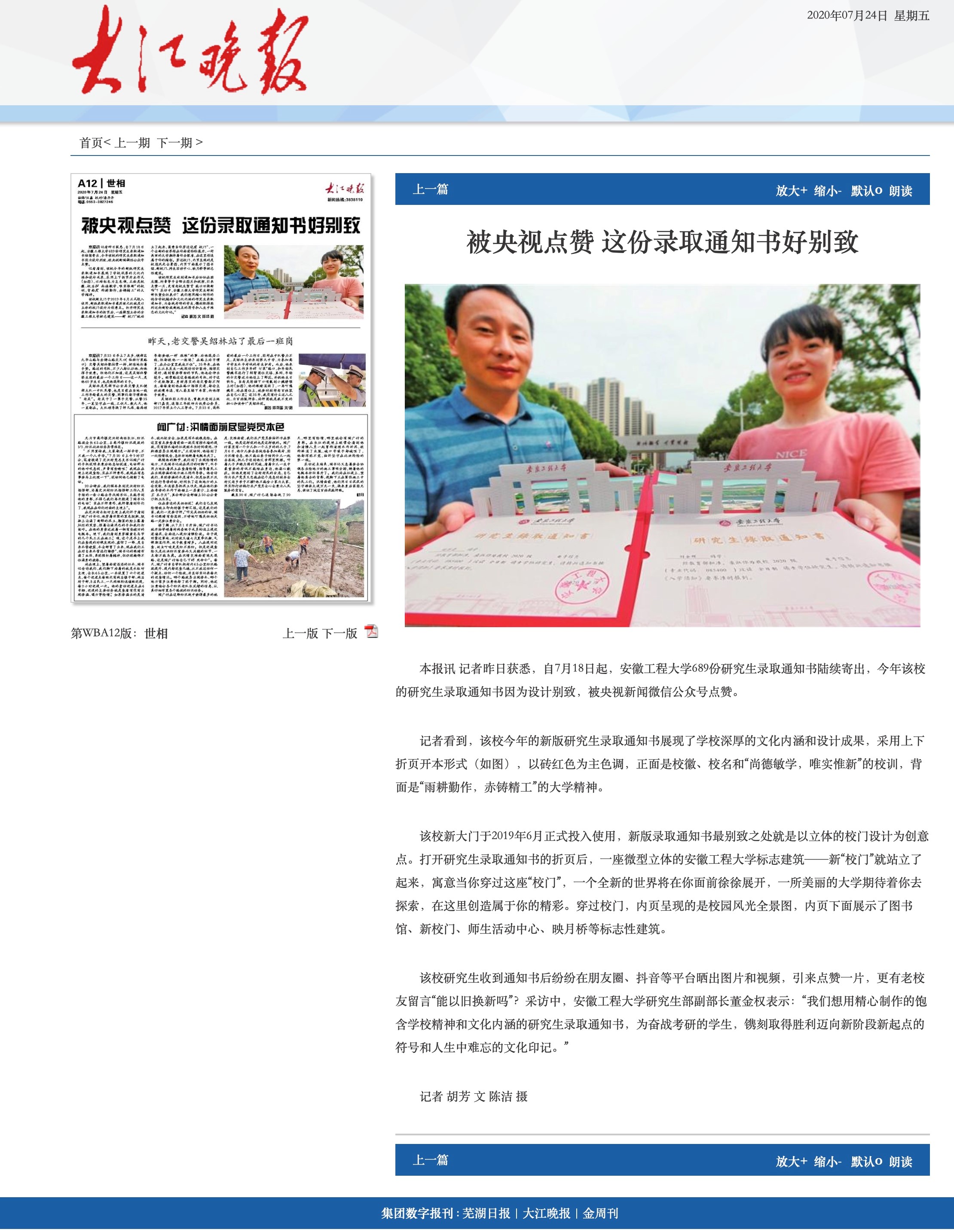 被央视点赞 这份录取通知书好别致