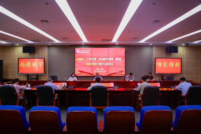 本网讯为深入贯彻落实习近平总书记对学校思政课建设重要指示精神,推进安徽省“大思政课”实践教学基地(宣城)(以下简称“基地”)建设任务落地落细,9月10日,基地建设领导小组办公室会议在我校召开。会议由校党委副书记、基地办主任苏国红主持,宣城市政府教育总督学陈守兵,宣城市干教基地办(泾县县委党校)副主任(副校长)周焕辉,宣城市教体局基教科科长罗忠妹、“大思政课”建设工作专班负责人方建福,校党委宣传部、马克思主义学院相关负责人出席会议。