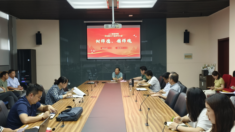 本网讯为热烈庆祝第40个教师节,引导广大教师大力弘扬教育家精神,持续增强对教师职业的尊重和认同,进一步加强师德师风建设,9月11日,人工智能学院在图文中心601会议室举行新教师入职仪式暨师德师风专题教育大会,全院教职工参加会议。会议由院党委书记任家钱主持。