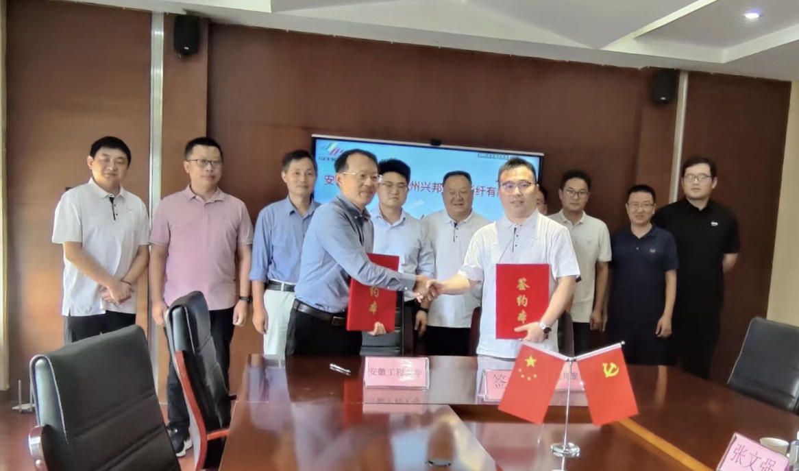 本网讯9月24日,纺织服装学院院长助理郑贤宏、项目负责人刘新华教授等一行5人赴滁州兴邦聚合彩纤有限公司,洽谈并签订产学研合作协议,开展访企拓岗活动。