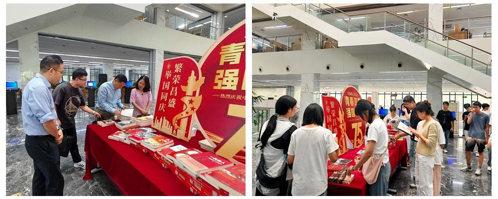 “建国75周年图书展”重在引导全校师生准确把握习近平总书记重要讲话重要指示批示精神的丰富内涵、核心要义和实践要求,引导大学生对党史、新中国史、改革开放史、社会主义发展史的学习和掌握,激励广大学子怀揣梦想,砥砺前行,为实现中华民族伟大复兴的中国梦贡献青春力量。现场展出了《习近平与大学生朋友们》第一、二卷,新中国成立后不同历史时期涌现出的诸多优秀文学作品,新中国科技巨变和改革开放后祖国变化等书籍,吸引了众多读者驻足阅读。