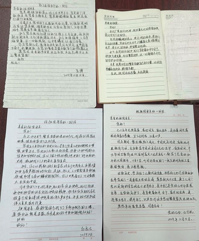 学生党员吴叶帆写道:“从历史课表中了解到您曾经的伤痕累累,从时代的发展中见证了您成为泱泱大国,这一路我明白您走得有多艰难且伟大。”“祖国母亲,我为您骄傲,为自己是您的儿女而自豪。衷心祝愿您在世界民族之林中永远屹立不倒!”……一封封信件中,字里行间真情流露,共同表达了学生们对祖国的无限热爱与敬仰。