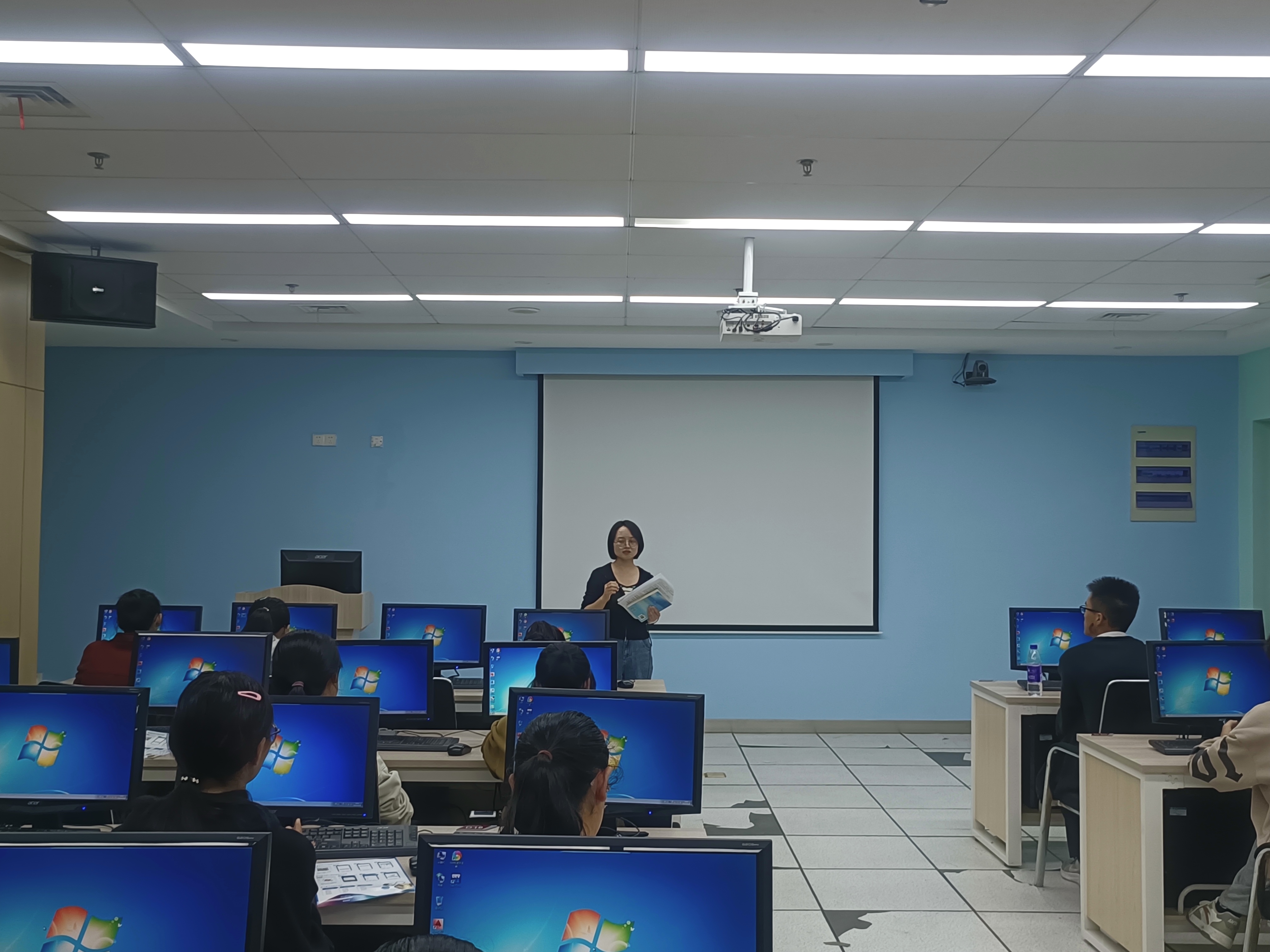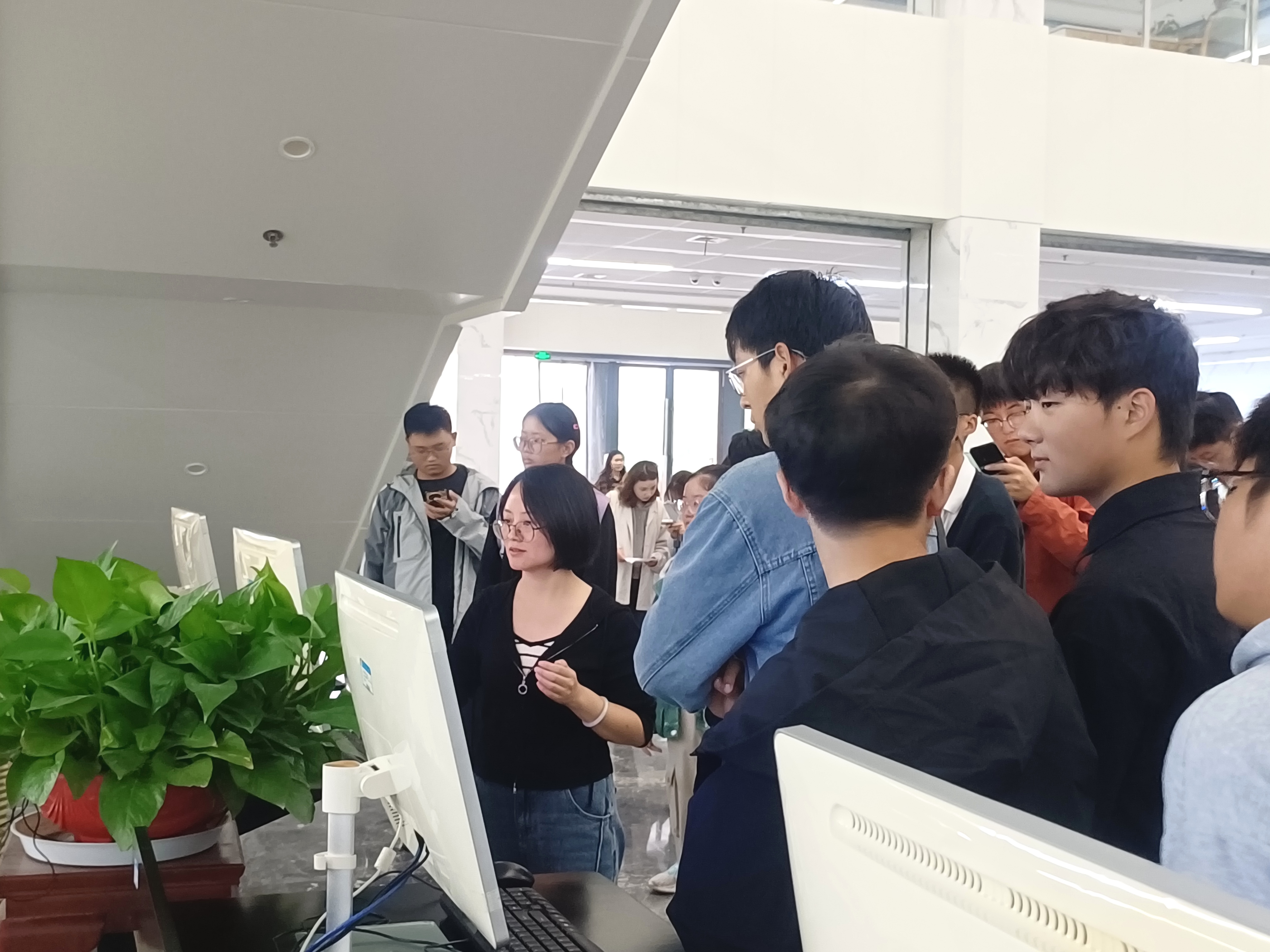 活动二是参观图书馆环节。在图书馆工作人员张耀的带领和讲解下,2024级新生完成了对图书馆借阅区及其特色区域的参观。在参观途中,工作人员讲解了图书馆的入馆须知、馆藏分布、资源检索方法、图书借阅规则以及自助借还书机、歌德电子书借阅机等设备的使用方法。参观学生还在图书馆五楼多媒体教室参加了限时竞答。