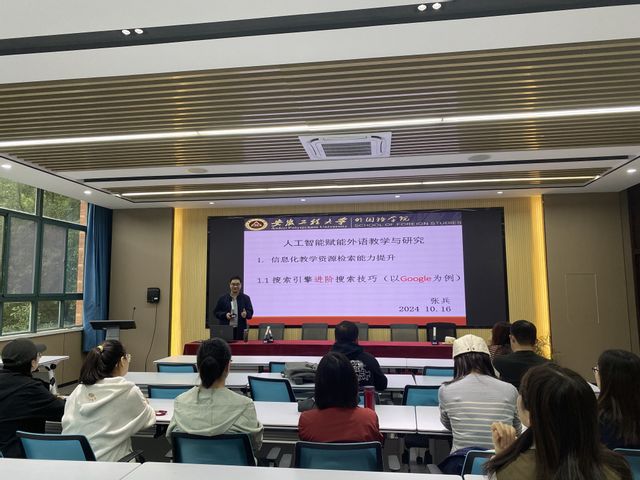 报告结束后,与会者纷纷表示受益匪浅,对人工智能赋能外语教学与科研方面的强大功能表现出浓厚的研究兴趣。同时,韩利敏介绍了人工智能时代外国语言文学学科和专业的困境与出路,强调了当代外语教师需要不断优化自身的知识结构,持续提升科技人文能力和素养,努力提高自己的“搜商”。张兵的报告不仅让师生更加深入地了解了人工智能技术在外语教学与科研中的应用前景和潜力,还为他们提供了宝贵的实践经验和启示。