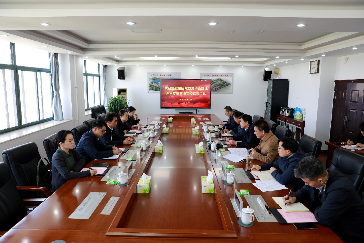 本网讯10月24日,安徽省外办新闻文化处处长文良权、安徽农业大学国际交流合作处副处长张华建等专家组一行3人,来到我校实地考察安徽省国际交流合作基地的申报建设情况。校党委书记张志宏,党委副书记、校长卢平出席,办公室、宣传部、国际处以及芜湖市外办的相关负责人参加。