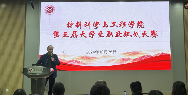 本网讯为进一步落实“三全六专”育人实践,引导大学生树立正确的成才观、就业观和择业观,科学合理规划学业与职业发展,提升就业竞争力,10月28日晚,材料科学与工程学院在5J117举办第五届大学生职业规划大赛决赛。校团委教师兼职副书记姚伟波、设计学院团委负责人田潇濛、化环学院团委负责人王康、材料学院辅导员周冬梅、行管212班刘佳慧担任评委。学院党委副书记方玖胜、团委负责人田园、辅导员鲁力和全体新生参加活动。
