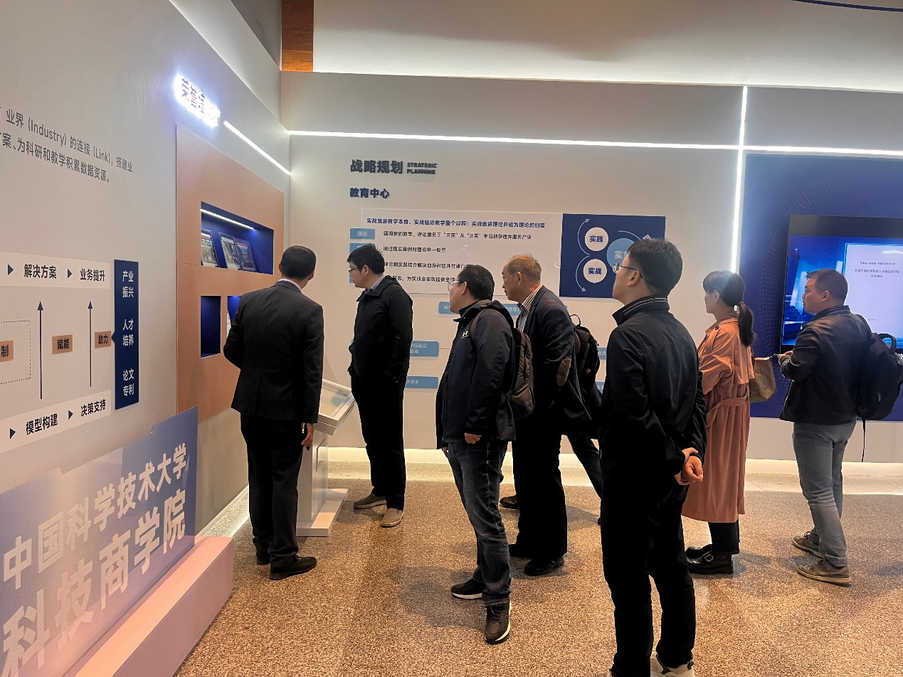 在中国科技大学期间,龚本刚一行还参观了中国科学技术大学国际金融研究院,重点学习了该院在MBA项目建设、MBA案例库建设、社会服务等方面的成功经验。