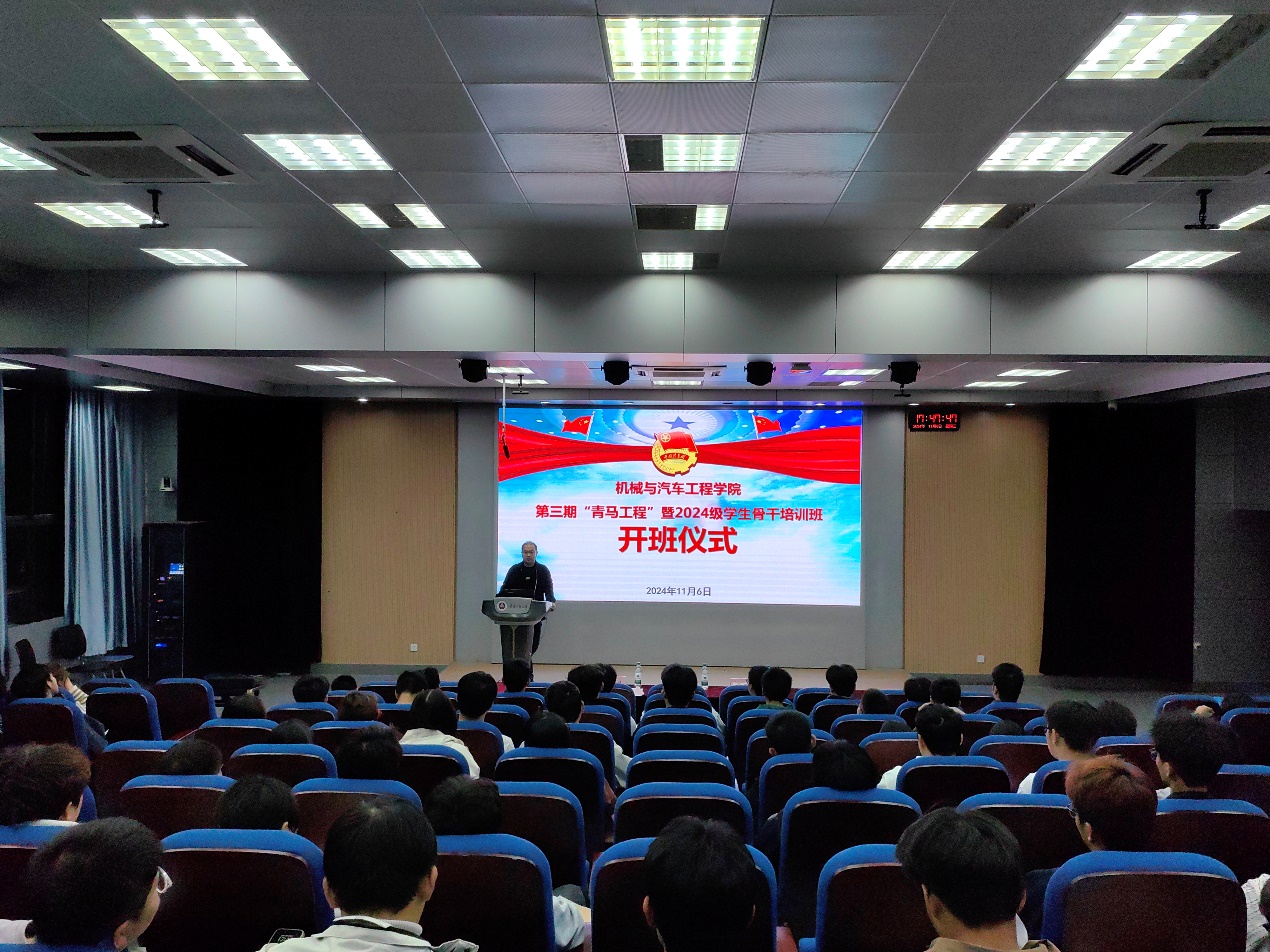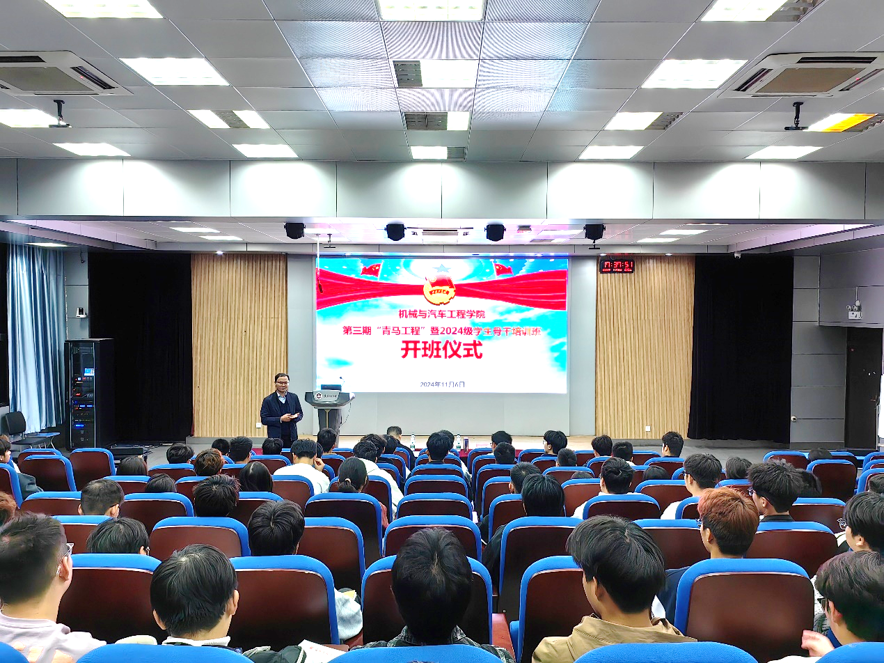 本网讯为引导青年团员坚定马克思主义信仰,培养有坚定信仰、卓越能力和优良素质的青年政治骨干,引领大学生骨干认真学习贯彻党的二十届三中全会精神,11月6日,机械与汽车工程学院举行第三期“青马工程”暨学生骨干培训班开班仪式,机械与汽车工程学院党委副书记秦广虎、校团委兼职副书记姚伟波和全体参训学员参加开班仪式,会议由程雷主持。