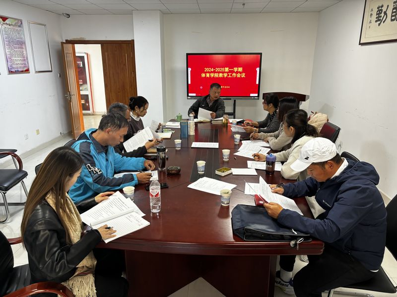 本网讯11月6日,体育学院召开教学工作例会,通报期中教学检查情况,研究落实学校教学工作会议精神,布置近期学院教学重点工作。会议由副院长金庆红主持,各基层教学组织负责人及教学办公室人员参加会议。