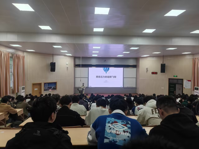 李梦菊以“乘着压力的翅膀飞翔”为主题,列举了毕业班学生常见心理困惑,宣传普及心理健康知识,引导毕业生学会管理情绪,拥有稳定的心态。李梦菊鼓励同学们以积极、乐观、向上的心态来面对人生,面对未来,用正能量来主导自己的人生。