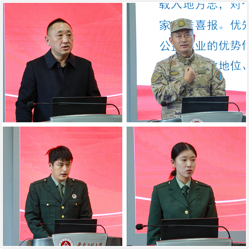 张开炳介绍了我校近年来征兵工作情况和取得的成绩。他指出,我校一直以来高度重视征兵工作,努力引导满怀理想、充满激情的青年学子携笔从戎,鼓励大学生将个人理想追求融入到国家的发展大局之中,为国防和军队现代化建设贡献青春力量。他指出2025年征兵报名即将开始,在区委区政府的领导下,在鸠江区人武部的指导和帮助下,学校将继续全力做好各项征兵工作。他希望同学们能够积极响应国家号召,踊跃应征报名,接受祖国挑选,将个人理想融入国家和民族的事业之中,用实际行动书写无愧于时代、无愧于青春的华彩篇章。