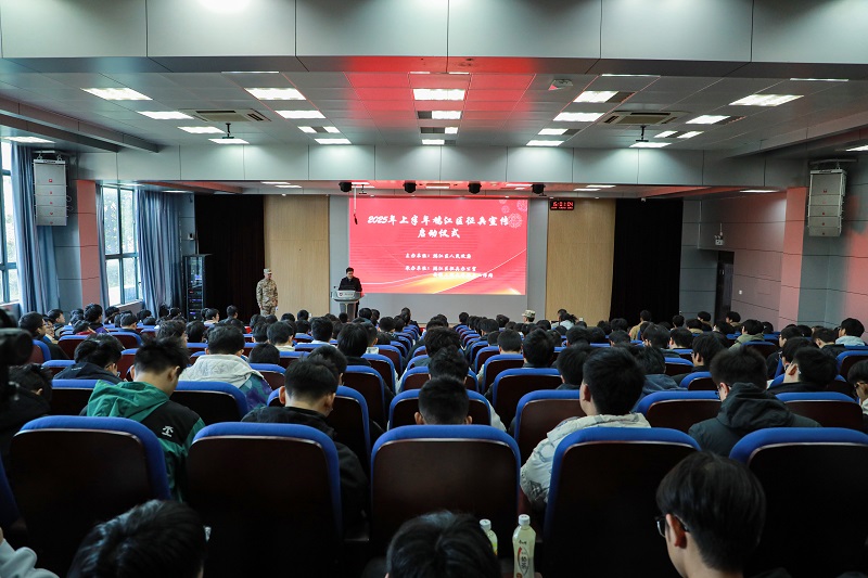 本网讯11月27日,2025年上半年鸠江区征兵宣传启动仪式在我校5教117教室举行。校党委常委、副校长张开炳,鸠江区副区长、公安局局长高文根,鸠江区人武部政委陶然,皖江学院党委副书记、纪委书记、副院长左方敏,校学生处处长黄炜,芜湖职业技术学院学生处副处长牛志伟出席活动,我校征兵工作站工作人员、退役大学生代表、2025年应征大学生代表参加此次活动。仪式由陶然主持。
