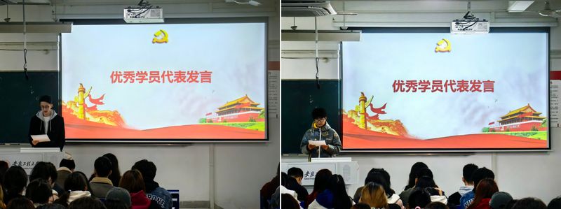 产品设计222刘畅、环境设计233叶宣志分别作为第十五期发展对象培训班学员代表、第四十六期入党积极分子培训班学员代表发言。他们分别汇报了对培训班理论课程学习的心得,大家一致表示,本次培训班培训内容丰富、形式多样、理论扎实,将会更加坚定地把学到的知识和感悟,转化为实际行动,用更加饱满的热情、更加坚定的信念,投身到党和人民的事业中去,共同为实现中华民族伟大复兴的中国梦而努力奋斗。