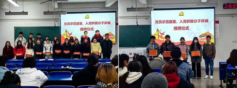 典礼现场还进行了党员宿舍和积极分子床铺的授牌仪式,以此激励发展对象和入党积极分子在日常生活和学习中继续发挥先锋模范作用,以实际行动践行党的宗旨,为党和人民的事业贡献自己的力量。