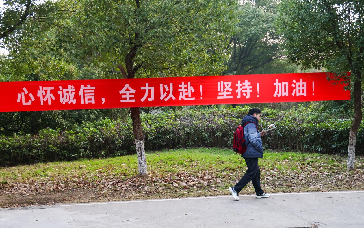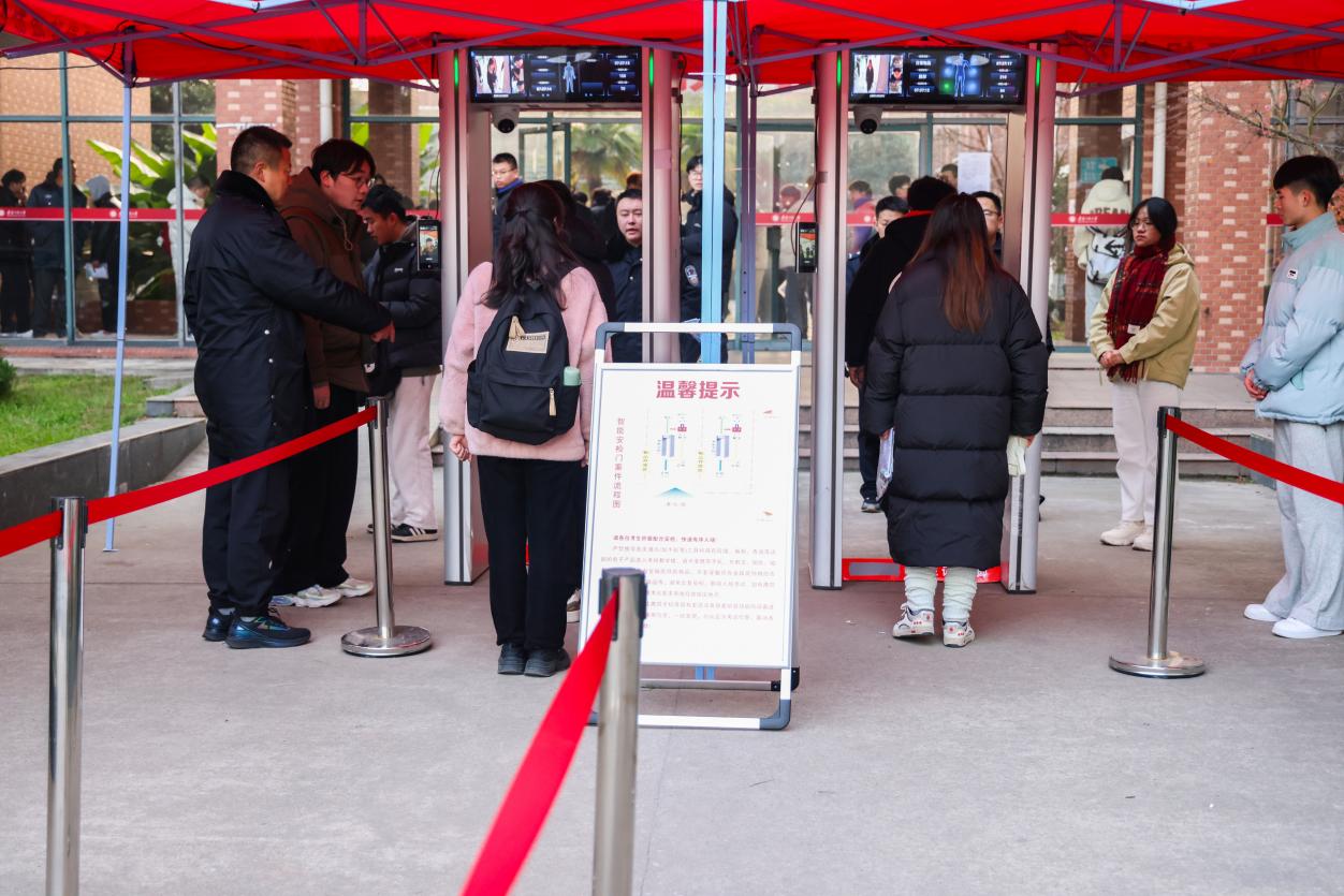 考点内外,各部门、学院协调配合,严肃考风考纪。在考场入口安装安检门,毕业班辅导员、志愿者引导考生安检进场;设置手机临时存放点,使用5G手机信号屏蔽仪切断通信讯号,考试全过程实行视频监控并录像;学校征集了4000余条标语,选取了其中的36条制作成了横幅和展板,为考生们加油鼓劲;租用20余辆大巴车往返接送国际工程师学院校区1055名考生;协调学术报告厅、师生活动中心礼堂为学生提供休息场地,做好服务保障。同时,学校在考场周边设置了安保巡逻岗位,后勤保障部门也全力做好各项服务工作,联系食堂提供相关暖心午餐,为考生和考务人员提供了舒适的考试和工作环境,确保考试顺利进行。