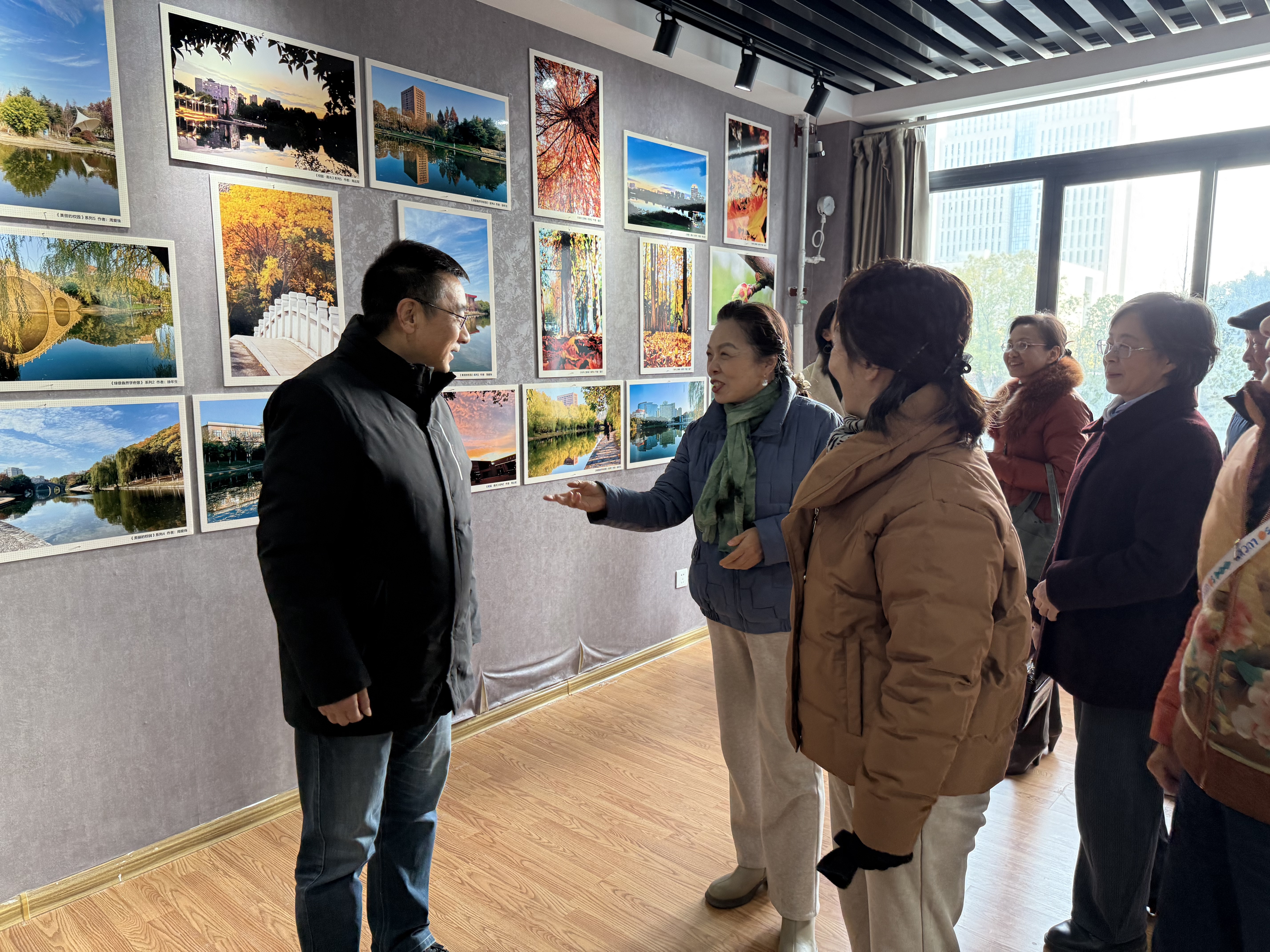 本网讯为庆祝我校建校89周年,喜迎2025年元旦,展现我校离退休教职工热爱学校、热爱生活、热爱祖国大好河山,永远跟党走、奋进新征程的精神风貌,12月28日,由党委宣传部、离退休工作处、工会、关工委共同举办的“喜迎校庆 光影绽放”摄影作品展在离退休活动中心三楼展厅和图书馆大厅开展。30日,校党委副书记郑健来到离退休活动中心展区参观并与摄影展作者进行现场交流。