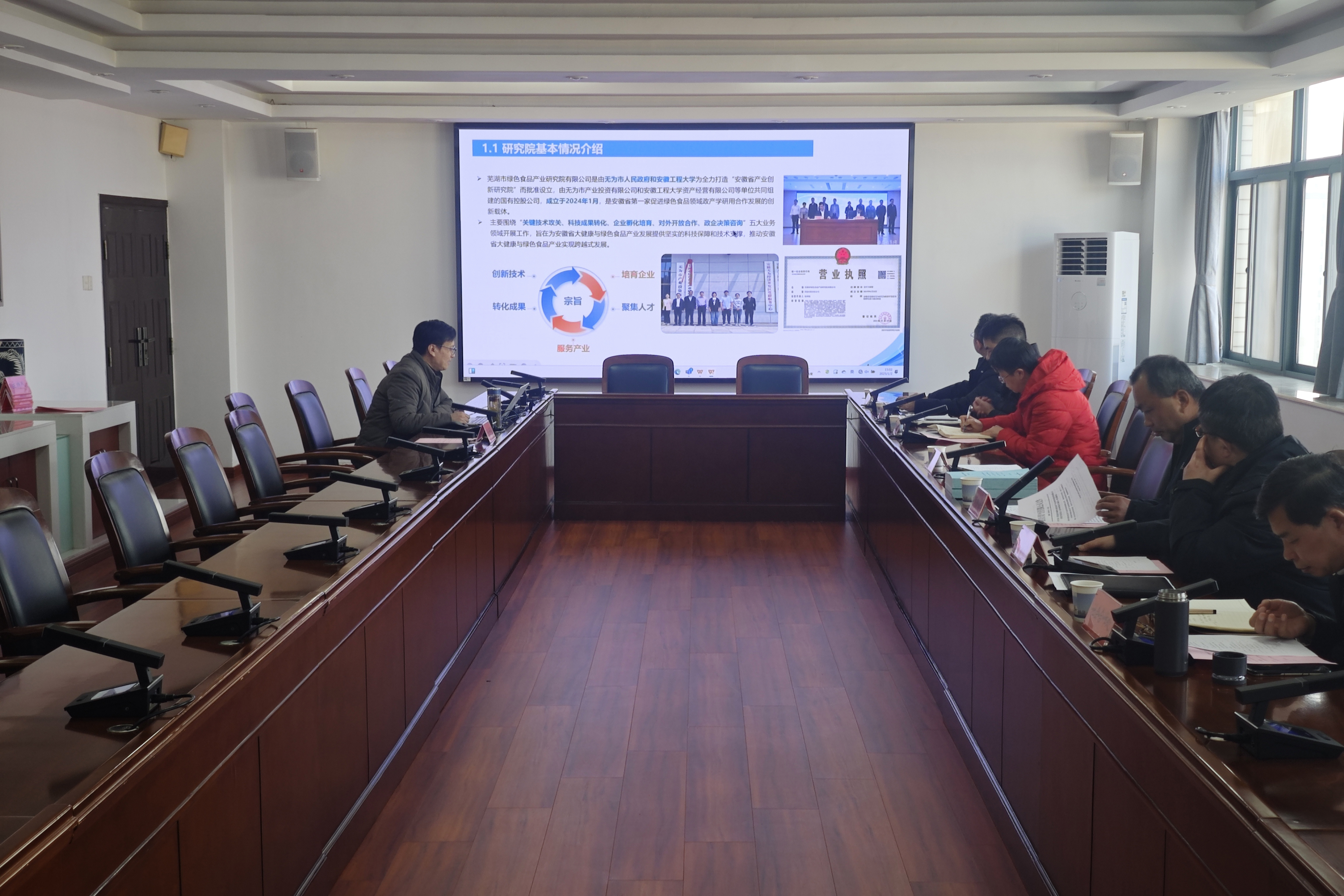 本网讯1月2日,芜湖市绿色食品产业研究院有限公司(以下简称“研究院”)2024年度校内考核会在学校A座1215会议室举行,校组织部、人事处、科技处、社会合作处、生物与食品学院等部门负责人参会,考核会由资产经营公司总经理何朝林主持。