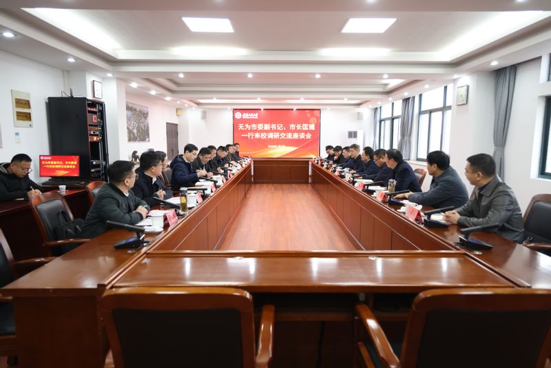 匡健介绍了无为市的人文历史和经济社会发展情况,就无为市近年来重点布局的产业集群进行了说明。他指出,校地合作已取得显著成效,希望双方进一步加强谋划,就联合办学等事宜进行深入对接。