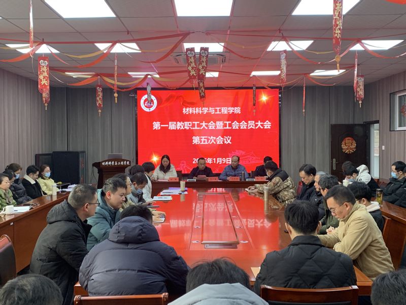 本网讯1月9日,材料科学与工程学院在B216会议室召开第一届教职工大会暨工会会员大会第五次会议。全体教职工参加会议。会议由学院党委委员、副院长陶锋主持。